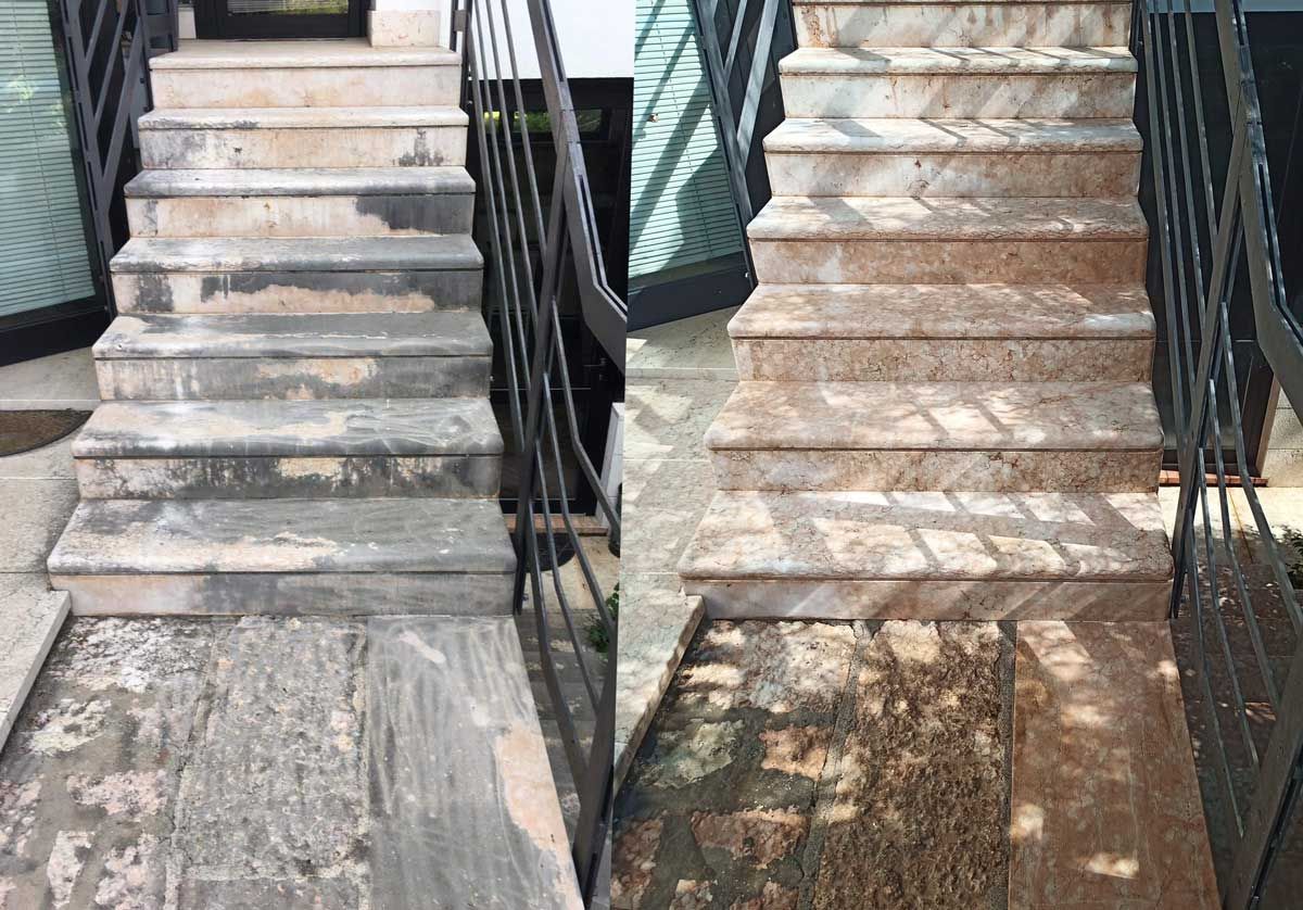 Il mio intervento in questo caso unisce la pulizia delle superfici verticali (pareti, muri, recinzioni, ecc.) e di quelle orizzontali (pavimenti, scale, ecc.), nonché di tutte quelle parti comuni che l'amministratore condominiale desideri mantenere pulite e in ordine.