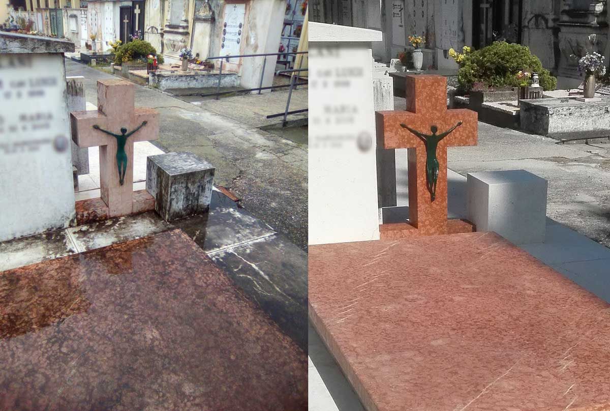Esempi di pulizia lapidi cimiteriali e arte funeraria in marmo e pietra